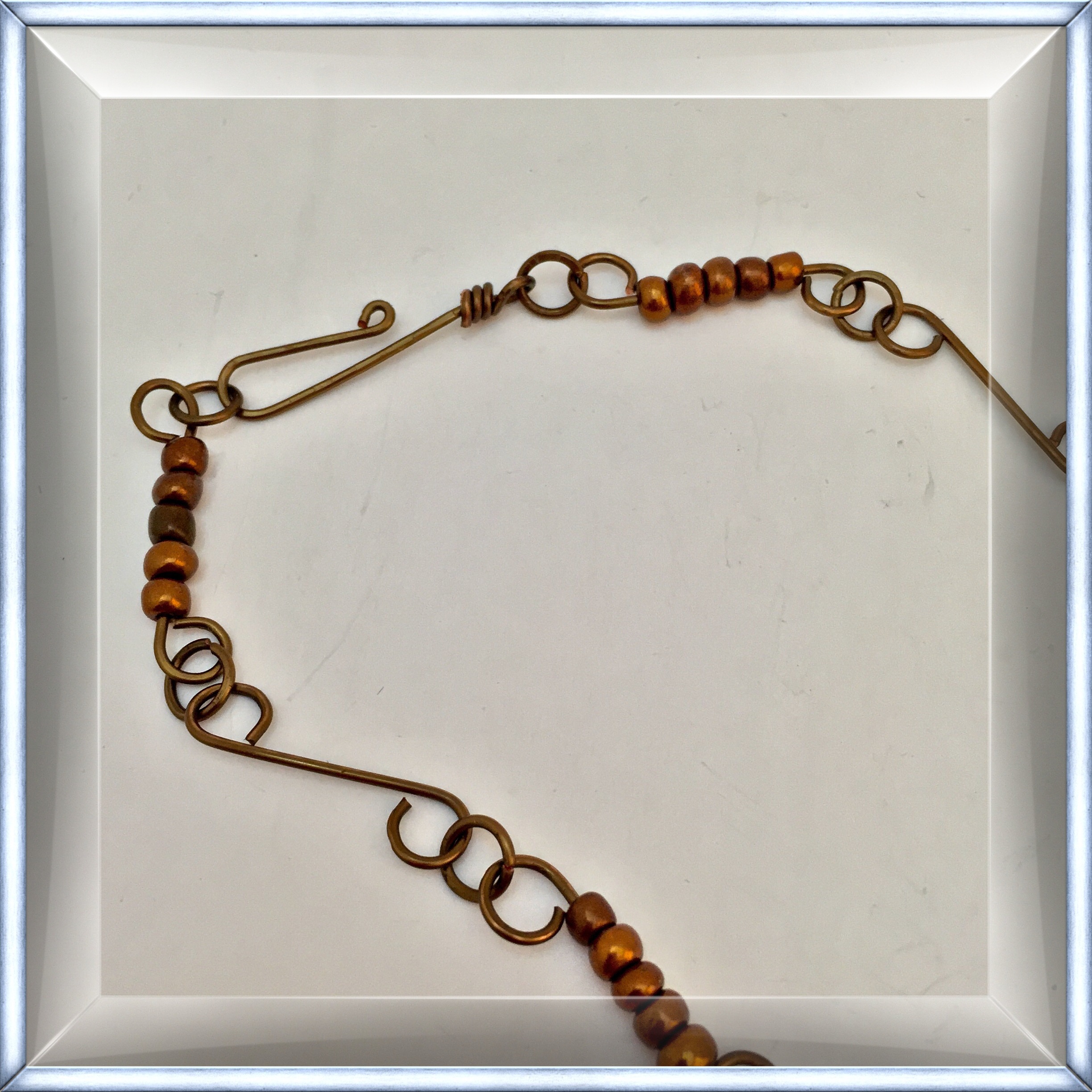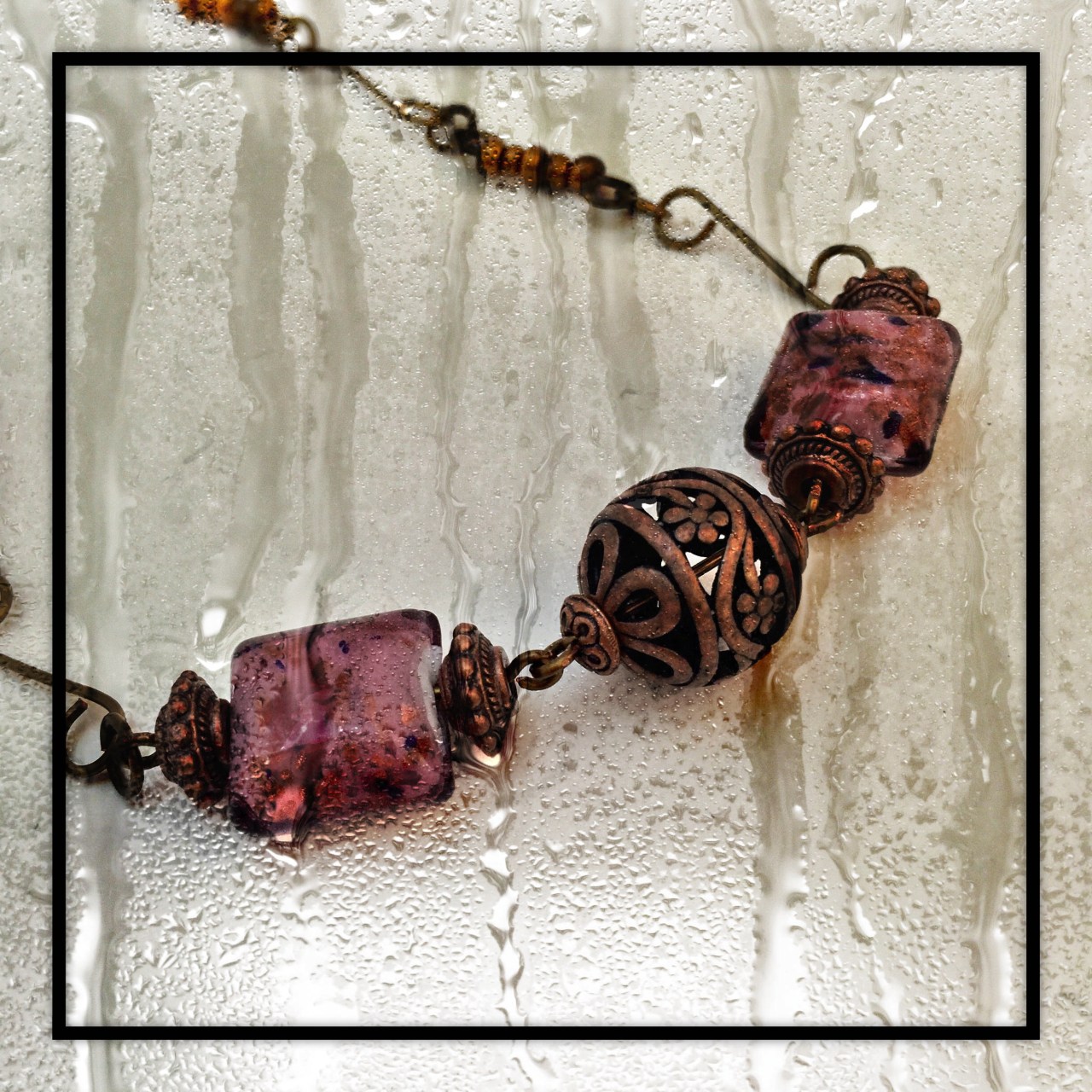 Lampwork bead necklace on a handmade chain Date: August 7, 2015Author: tddugnolle Category: Uncategorized Tags: antique bronze, antique copper, Glass beads, handmade chain Post navigation ← Imported Czech glass bead bracelet White Stardust necklace → Lampwork and copper bead focals on a handmade chain and clasp. 18″ long. $15.00. Contact me to purchase. Share this: Click to email a link to a friend (Opens in new window) Email Like Loading... Related