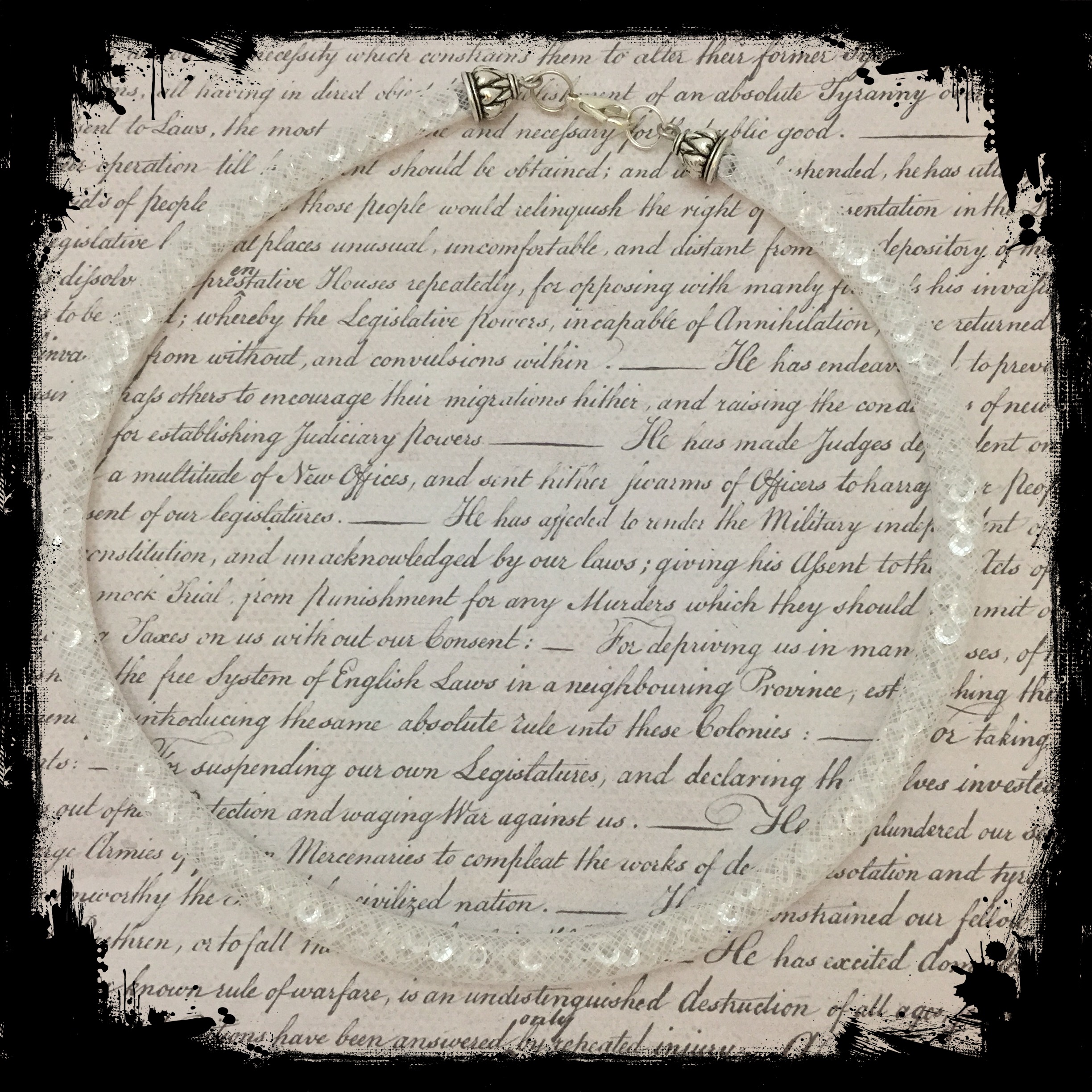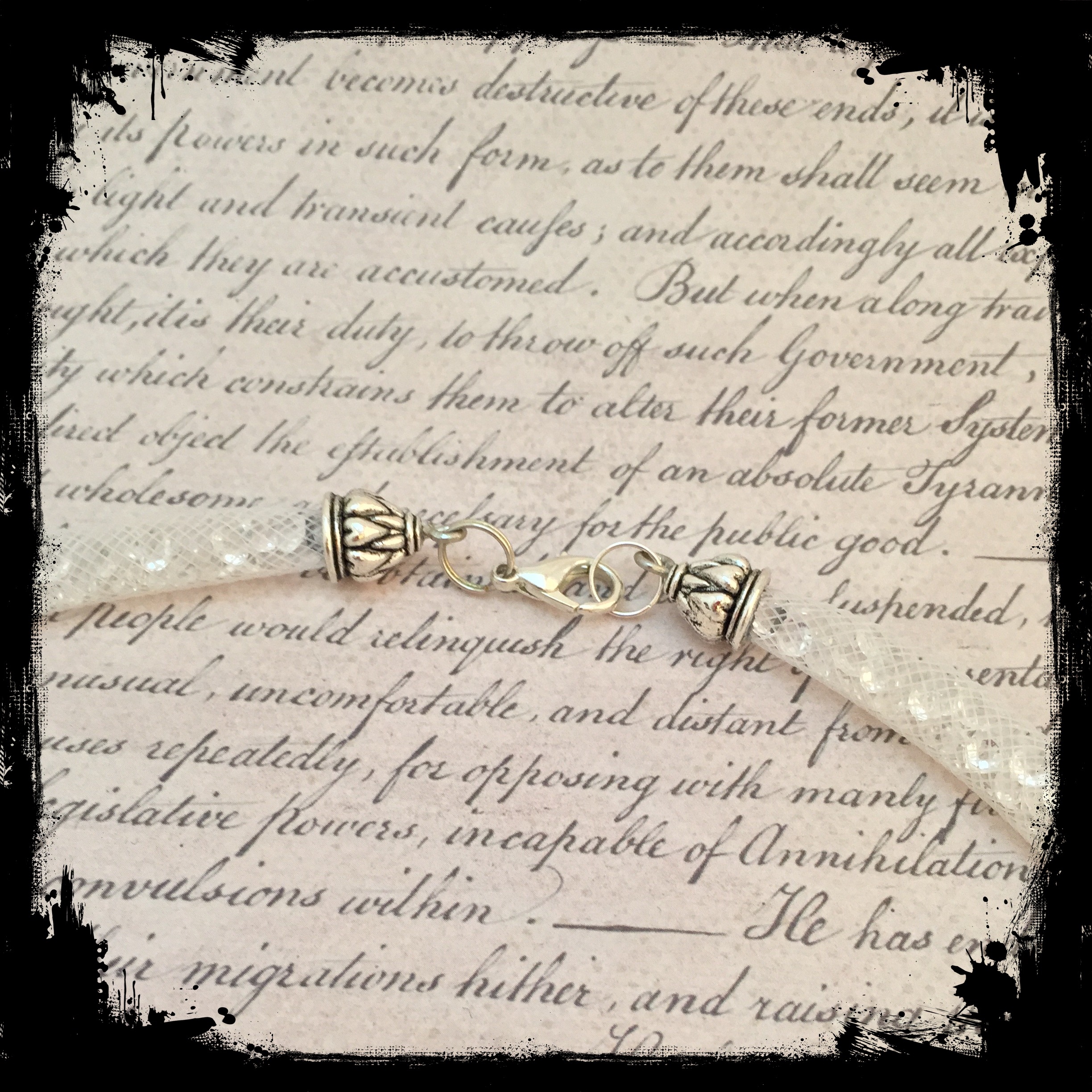 White Stardust necklace Date: August 7, 2015Author: tddugnolle Category: Necklaces Tags: acrylic gemstones, Necklace, sparkle, stardust Post navigation ← Lampwork bead necklace on a handmade chain Pendant necklace, imported Czech beads → White tube mesh filled with clear faceted acrylic gemstones. 18″ long. $15.00. Contact me to purchase. Share this: Email a link to a friend (Opens in new window) Email Like Loading... Related