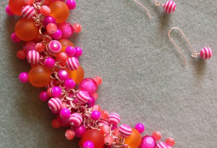 Pink and orange fringed bracelet and matching earrings